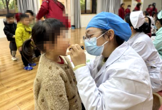 义诊现场,口腔科医务人员为孩子们进行口腔检查,关注牙齿萌出、龋齿及牙龈健康情况,并向教师讲解儿童口腔护理知识,包括正确刷牙方法、乳牙龋齿预防及饮食护牙要点。儿科医务人员同步开展身高体重测量、生长发育评估及视力筛查,全面关爱幼儿健康。此次活动将专业医疗服务与健康知识送入校园,既帮助家长及时了解孩子口腔状况,也以轻松的方式增强幼儿护牙意识。