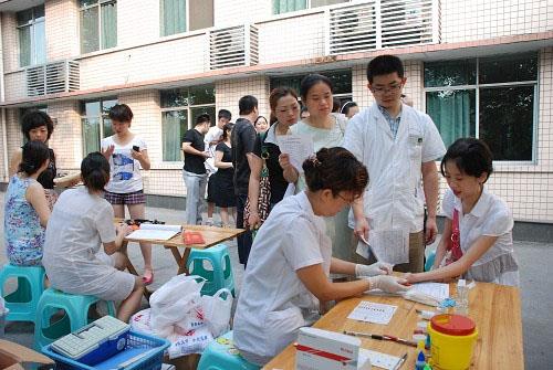8月13日上午,多功能厅外的空地上排起了长队,我院职工踊跃献血,70人共献血21300毫升。在现场我们看到一位“插队”的献血者——急诊科主任曹灵红,10点左右有一个演练需要他现场指挥,他不得不带着歉意插队上了献血车。多次献血的他说,我国血源紧张,一方面是用血量大,一方面是人们对血液的认识存在误区。据介绍,一个健康的成年人一次献血300-400毫升,对身体没有任何影响,而血液的主要成分红细胞在体内的生存时间只有120天。献血可以刺激人体造血机能,同时可以起到稀释血液的作用,对某些疾病有一定好处。作为医务人员,他希望通过自己的行为树立一种示范作用。骨科护士长雷国平已经是第8次献血了,从2000年第一次献血到现在,累积献血达1800毫升。当记者问她为什么献血时,她认为这是小事,不值得采访。据了解,不少献血者都是刚刚上了夜班就来献血,有些甚至动员自己的亲属参与献血,热情非常高,充分体现了员工的集体意识和个人素质。另据输血科主任郭渝介绍,今年上半年,我院用血量达到1.32吨,作为外科特色突出的医院,我院用血量在全市居第一位,他认为应该提倡合理用血、节约用血,以缓解我市用血紧急的局面。