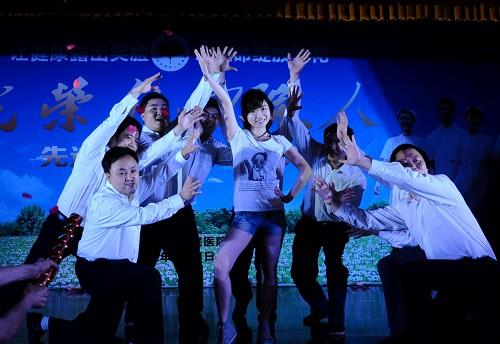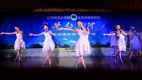 5月11日,新落成的汇东综合楼学术交流中心一片喜气洋洋的氛围,一场主题为“光荣的四院人”的先进表彰暨文艺汇演在这里隆重举行。此次演出内容丰富,既有浓郁民族风情的藏族踢踏舞,又有深具地方特色的说唱表演《这就是自贡》,还有展现医院精神风貌的舞蹈《光荣的四院人》;表演形式多样,既有大合唱,也有歌伴舞,还有小品和木偶剧等;参与范围广,表演者既有离退休职工,也有在职职工,还有在院学生代表和职工子女。两个小时的表演精彩纷呈,加上绚丽的舞台灯光效果,现场观众享受了一场震撼的视听盛宴。