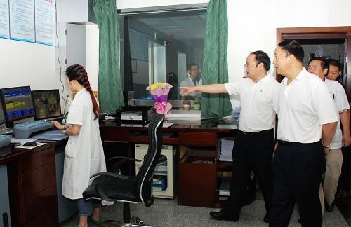 6月27日,市人大主任陈华一行来院视察了体检中心和肿瘤科。图为院领导陪同视察。