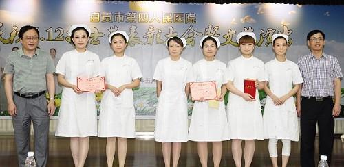 这是医院第二次对30年护龄护士进行表彰、奖励,至此,全院共有58名护士获得此项表彰。当天,手术室护士廖家玉代表受表彰的护士发言。回望自己30年的职业生涯,她以质朴的语言阐释了奉献的真谛,并号召大家继续发挥余热,投身医院发展建设,起好传帮带作用。表彰会后举行了丰富的文艺表演。既有惊艳的时装秀,又有活力四射的现代舞,既有深情的诗朗诵,又有高亢的男声合唱。一位患者家属也应邀登台献艺,参与了茶道表演。她说,她的父亲曾经在我院住院,得到了医务人员的精心治疗和护理。在国际护士节到来之际,她以特殊的方式向医务人员致以节日的问候。