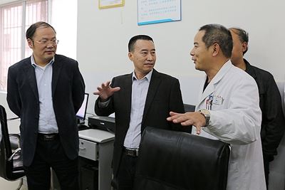 10月31日下午,新任市卫生计生委主任黄麟,在副主任虞贵兴等陪同下来到自贡市第四人民医院调研。市四医院院长刘建辉,党委书记、副院长杜冲,副院长黄昌平,党委副书记龚祥忠,副院长廖学琴,总会计师高林英陪同调研。