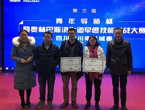 近日,我院消化内科主任毕小刚带队参加第三届青年导师杯暨奥林巴斯消化道早癌技能实战大赛川南区域赛,四名参赛选手全部晋级复赛,最终卢磊、张艳在参赛选手中脱颖而出,分别获得二等奖和三等奖。