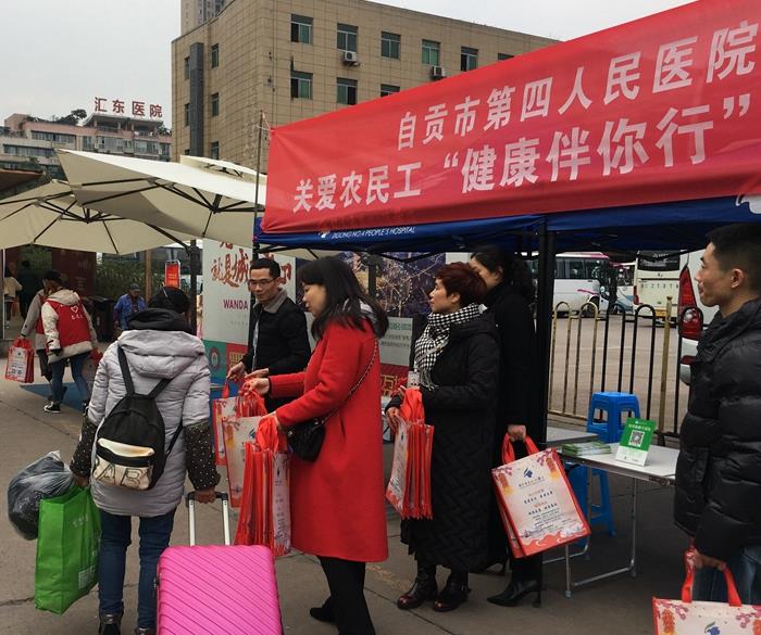 为深入贯彻落实省委省政府、市委市政府和市卫生健康委员会关于做好今冬明春农民工服务保障工作的部署要求,我院事业发展科于1月19、20日组织健康体检中心、医院感染科等9名医务人员和志愿者在自贡长途汽车站组织开展题为关爱农民工“健康伴你行”专项行动。