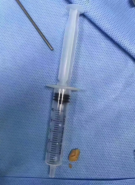 由于时间紧迫,当天中午小新办理入院后,紧接着下午6点多,麻醉科、耳鼻咽喉头颈外科、手术室等多科医务人员共同协作为其实施了手术。手术医生梁国庆介绍说:“此次手术有不少难点,一是患儿的情况特殊,花生米卡在总气道里,花生米位置是活动的,一旦咳嗽时移动幅度过大,嵌在声门随时可能致命。二是手术麻醉和钳取异物的风险。麻醉医生和手术医生钳取异物通道是共用同一气道,这对后面钳取异物增大了不少难度。三是患儿气道小,花生米比较大。”