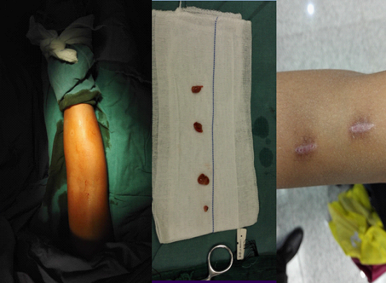 岳璇弟查看了王阿姨的病情后,决定先进行辅助化疗缩小肿瘤后,再进行根治手术和植皮手术。“患者癌细胞已基本占据了一侧乳房,只有先靠敷药缩小肿瘤后,才能实施手术。”岳璇弟介绍到。