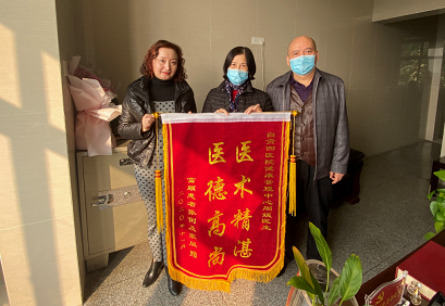 由于病情发现早,张女士及时手术治疗取得了非常好的效果。近期回到家中静养的张女士再次接到周媛医生打来的回访电话。“她对待患者认真负责、对待工作精益求精的态度和作风着实让我们感动。”张女士和丈夫商议后决定要向这位好医生送上心中的感激,于是便出现了夫妻俩到市四医院党委办公室赠送锦旗的一幕。
