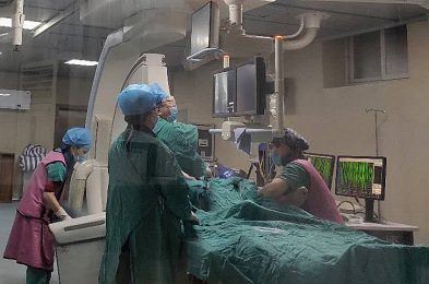 节日期间还是心血管疾病的高发期。与亲人相聚情绪难免出现激动,顿顿吃大餐也滋生了发病概率。发病急、病情危重是心血管疾病的特点,为让患者得到快速、有效救治,心血管内科医务人员没来得及和家人吃顿团年饭、没顾得上陪亲人聊聊天,从大年三十到正月初六共完成冠状动脉阻塞、心肌梗塞等介入手术10台次。在正月初一那天,医务人员在手术室内从上午一直忙碌到晚上9点才回家吃上了团年饭。