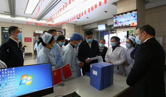 在急诊科,宋世贵通过现场视察、查阅资料、提问等方式,详细了解了我院新冠肺炎疫苗预防接种和院感防控工作人员配备、资质、培训等情况。随后,他又来到抢救室,对开通绿色通道、急救流程、设施设备和药品保障等情况进行了现场检查。调研中,宋世贵和医务人员亲切交流,叮嘱大家一定做好防护,遵守疫苗接种和院感防控相关规定,科学有序的进行接种,并鼓励医务人员再接再厉,按时高质量完成疫苗接种任务。