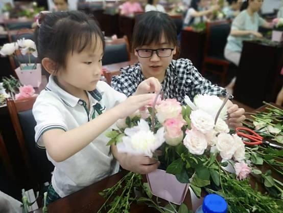 活动现场,职工们通过医院文化、南湖院区建设等题目竞答赢取花材,在插花师的指导下,和配偶、子女共同协作,大胆发挥想象,用灵巧的双手,将多种花材修剪搭配,制作出了一盆盆形态各异、娇艳欲滴,象征着祝福与美好的插花作品,既增进了职工及其子女间的感情,又排解了压力,放松了心情。