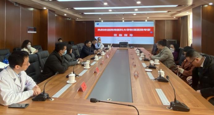 1月19日,西南医科大学附属医院新冠专家组成员一行来我院对重症患者救治进行指导。党委书记刘建辉,党委副书记、院长章成,副院长何昌国,以及我院专家组代表成员、医务科人员参加查房、座谈。