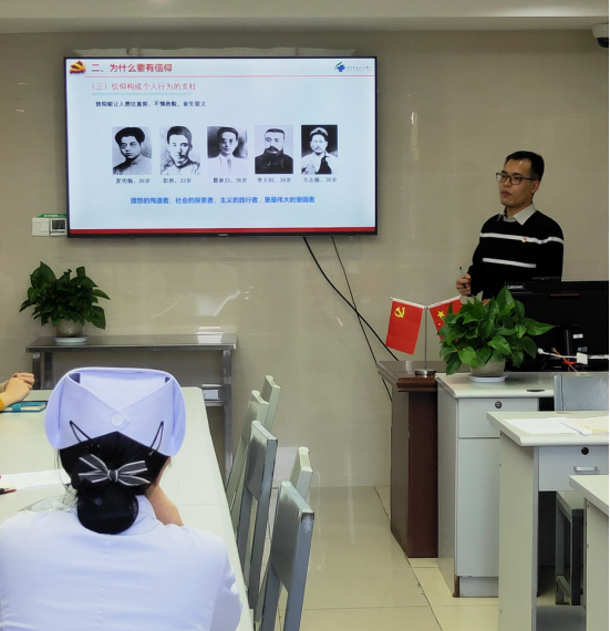 4月20日,市四医院红色宣讲团到脊柱创伤外科支部、关节创伤外科支部开展巡讲。宣讲团成员陈彦名为两个支部近30名党员青年干部开展了一堂《在党史中汲取信仰的力量》专题党课。陈彦名从什么是信仰、为什么要有信仰、我们应该有什么样的信仰、做个有信仰的人四部分向支部党员阐释了如何在党史中汲取信仰的力量,如何将信仰的力量转化为工作实效,支部党员表示收获颇丰。脊柱创伤外科支部书记张学华谈到,“通过这样一次专题党课,加强对党忠诚教育,让支部党员时刻牢记党员身份,用信仰的力量提升精神境界,在工作中敢担当善作为。”