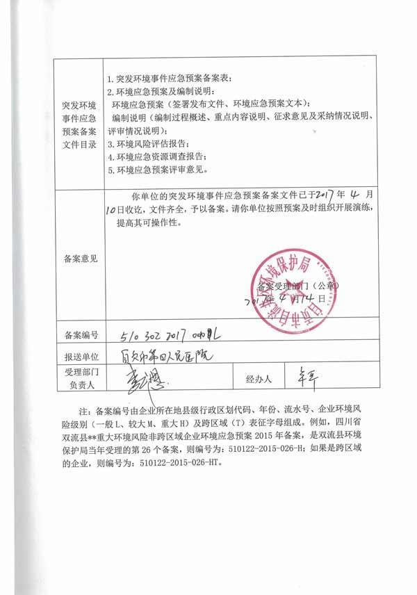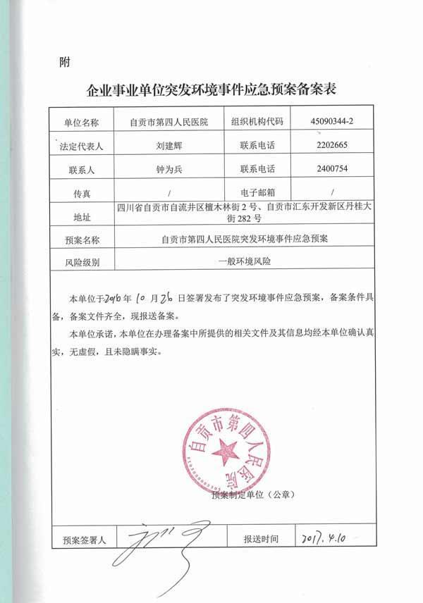 环保信息公开内容(四)——自贡市第四人民医院环评报告和批复文件急救电话:0813-120 预约挂号电话:0813-2401126、0813-2401026 投诉电话:2300337