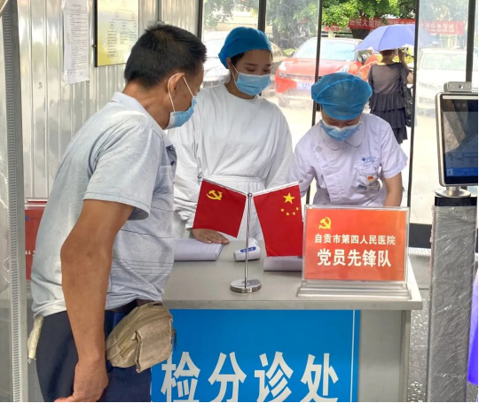 “您好,请按照提示扫码,谢谢”“婆婆,请到这边登记一下信息,再测一下体温”……这些天,在市四医院院本部、汇东医院预检分诊处,总能见到身穿工作服和红色马甲的党员志愿服务队和青年突击队。