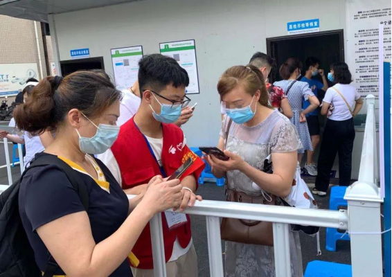 尤其是7月中下旬以来,气温连续多日冲上40度。志愿者们克服困难,扎根一线,勤勤恳恳、任劳任怨,忙碌于对进入医院的群众进行扫码登记、体温检测、疫苗接种等工作。“虽然有时也会遇到一些群众不听劝、不配合登记的情况,但通过我们的耐心解释,积极引导,现场秩序井然有序。”青年突击队志愿者龙玉军边擦汗边说到。