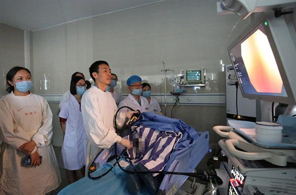 古大爷是一位82岁的患者,因消化道出血来我院就诊,胃镜发现胃内有一个大小6厘米左右的间质瘤,表面溃疡出血,如果不拿掉肿瘤,将危及生命,对于高龄同时又有心律失常的老人来说,外科手术的风险极大,于是辗转来到我院,他用内镜微创的方法将胃内的肿瘤完整的切除,患者明显好转,病人非常满意,临出院时送来锦旗特意要合影留念。
