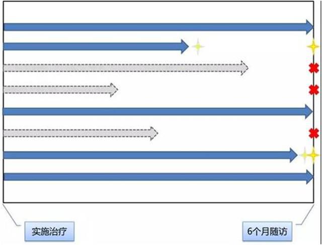1.左侧是每个病人观察的起点,比如我们选取了2015-2017年进行手术的患者,那么左侧就是这期间每个进行手术患者各自的手术时间点。 2.右侧是每个患者半年时的随访信息,假说我们关注的是患者有没有进行二次手术,黄色星星代表进行了二次手术。 3.每个箭头都表示1名患者。灰色箭头表示患者失访,也就是在6个月这一时点没有门诊信息(对应后面的红色×);蓝色箭头代表6个月有信息,或者6个月前已经收集到结局事件(二次手术)。当一个箭头对应的右侧终点没有出现图标的时候,意味着这名患者经过6个月随访没有二次手术。 问题来了!假如我们要评价“2种不同术式,患者二次手术的风险”。根据我们的尝试,一定首先想到,这么现成的纵向数据,不做个队列研究的设计就浪费了。是的,一般来说的确如此。但是如果同时出现了下面两种情况,您就要多加小心了: 1.当6个月随访点失访患者过多时。这在临床中是很常见的情况,不少患者觉得病好了,很可能半年就不来复查了;当然也有些患者觉得手术效果不好,想换个更好的医院试试,也不来复查了。对于水平比较高的医院来说,可能第一种情况出现的更多一些。失访有可能会同时带来混杂和偏倚,当然如果失访的数量不多,我们往往直接忽略偏倚,再进一步通过控制患者的基线特征来控制混杂,从而做出推论。 如果失访过多,偏倚的力量就不能被忽略了。最让人发愁的是,偏倚本身无法通过统计学手段去除。此时我们是费更多力气,整理出所有患者的数据,完成一个可能证据等级更高的“回顾性队列研究”呢?还是干脆省点儿力气,从所有的患者中找出发生结局的患者,再找一些半年没发生结局的患者作为对照,完成一个“病例-对照研究”就算了呢?也许您就应该做个平衡了。毕竟此时,研究设计类型已经不是证据等级的短板了。介于偏倚存在的可能性,此时的研究无论怎样都只是一个探索,摸索一下大致的方向而已。因此,选择队列还是病例-对照的设计类型,对研究效力的提升就很有限了。此时最理智的设计类型,一定是最省时省力的设计类型。 2.结局发生数量比较少。比如以二次手术作为结局时,也许我们2年收集了400名患者,其中300名在半年附近有随访(失访率25%,暂且认为失访带来的影响不太大),而300人中只有20人进行了二次手术。这时候如果还像之前所说的,试图进行一个回顾性队列设计的研究似乎就比较困难了。困难并不在于数据收集本身,而是因为结局事件发生较少,当我们把所有的患者纳入多因素分析的时候,模型的统计学效能就不够了。毕竟在很多以分类变量作为结局的模型中,样本够不够更多地取决于较少的那个类别。所以这时候我们期望通过统计学模型控制混杂因素的想法就落空了。 但是别忘了,我们控制混杂因素,除了多因素分析之外还有一手,就是匹配。如果这时候我们暂时放弃所有研究对象,只拿出20个发生结局事件的患者作为“病例组”,通过匹配的方法,找到和他们基线足够相似的20例(20-80例均可)患者作为“对照组”。这样有匹配的病例-对照设计反而能让我们更好地控制混杂,得到更接近真实情况的效应估计。 不难看出,当我们手头有很多现有的数据可用时,并不是一股脑丢进统计模型就能解决所有问题了。更多时候我们面对的并不是一个理想数据集,而是一个存在各种问题的“千疮百孔”的真实数据。在数据资源条件有限的情况下,合理的方案选择有可能能帮助我们更好地配置人力资源,甚至是帮助我们得到更接近真实情况的结论。总之,当我们追逐真实世界这一理念的时候,并不意味着“真实数据=真实世界”,路还很长,需要一步一步走。
