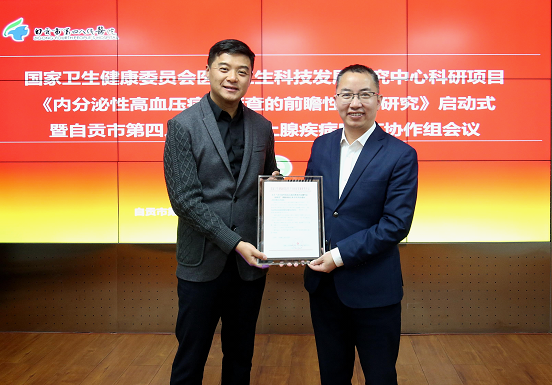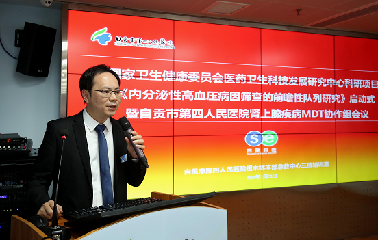 我院成功举办国家卫生健康委员会医药卫生科技发展研究中心研项目启动式时间:2023-02-23 浏览量:74680 来源: 作者:2月23日下午,我院在急诊三楼会议室召开了国家卫健委下发科研项目《内分泌性高血压病因筛查的前瞻性队列研究》启动仪式暨肾上腺疾病MDT诊疗协作组成立仪式。四川大学华西医院泌尿外科朱育春教授一行特邀参加启动仪式。 医院委副书记、院长章成,副院长罗昌彬、何昌国、泌尿外科付光庆主任及心内科、内分泌科、神经内科、神经外科、放射科、检验科等相关科室负责人出席。会议由科教科科长陈炜主持。