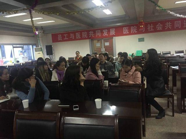 为进一步规范临床静脉治疗,提高静脉输液护理质量,培养专科护理人员,保障患者安全,促进患者健康。2017年1月4日下午,由护理部组织的护理静脉治疗专项小组年终座谈会在多功能厅举行。本次会议由肿瘤科护士长兼静疗专项小组组长张丽主持,全院护理静疗小组成员30余名参会。