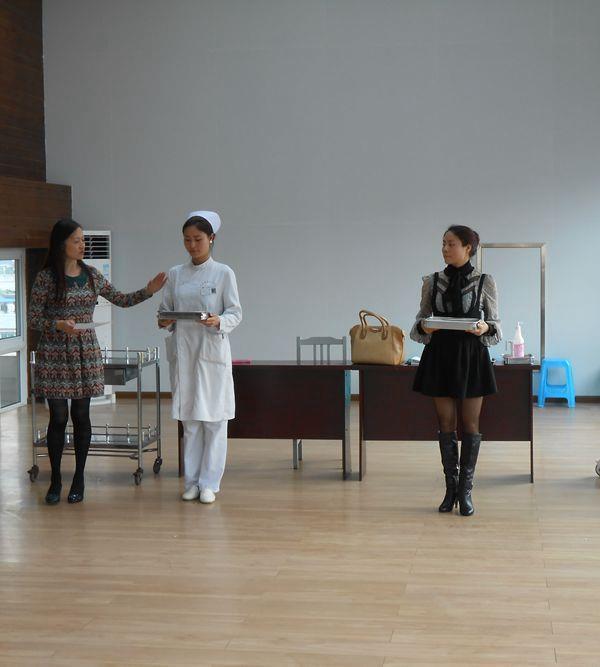 护理礼仪培训时间:2015-03-27 浏览量:2144 来源:李玥娟 作者: 为庆祝即将到来的“5.12”国际护士节,推动优质护理服务活动的开展,护理部拟在四月进行全院护理礼仪比赛。3月26日下午护理部组织的护理礼仪培训在汇东综合楼八楼会议室进行,全院40余名护理人员参加了此次培训。