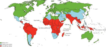 3. 疟疾有哪些症状? 感染早期常无症状或症状不明显,随着疟原虫在体内的逐步繁殖,常表现为恶心、乏力、低烧、腹泻和肌肉酸痛等,易被误诊为感冒或胃肠道感染。当病情逐渐加重后,表现为周期性寒热发作。可出现贫血及进行性脾肿大。 4. 疟疾高发地区在哪里? 根据世界卫生组织的估计,全球每年有超过2亿人感染疟疾,其中超过40万人死亡。热带和亚热带是疟疾受累最严重的地区,这些地区围绕赤道形成了一条“疟疾带”,包括拉丁美洲、撒哈拉以南的非洲,南亚和东南亚。2021年6月30日,世界卫生组织(WHO)宣布中国通过消除疟疾认证,成为WHO西太平洋区域30多年来第一个获得无疟疾认证的国家。但随着国际交流合作的日益频繁,输入性疟疾风险依然长期存在。
