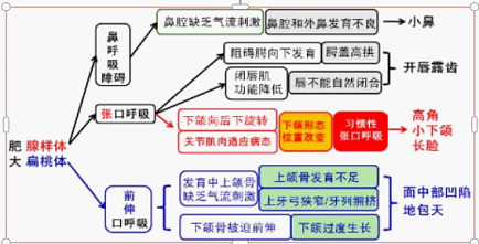 问题二:肥大增生的腺样体会给娃儿的生长发育和健康带来哪些危害? 第一,牙颌面发育畸形——腺样体面容。人在正常状态下大部分都是鼻呼吸,只有在某些情况下用口呼吸。而口呼吸分为生理性和病理性两大类,生理性指的是上呼吸道无堵塞,但患者习惯于通过口腔进行呼吸的方式,多见于体育运动中;病理性则是由于某些原因导致口咽以上的呼吸道发生阻塞迫使患者采用口腔呼吸,这其中以腺样体扁桃体肥大最为常见。长期用口呼吸,气流冲击硬腭会使硬腭变形,久而久之,面部发育出现异常,形成令家长闻之色变的“腺样体面容”。