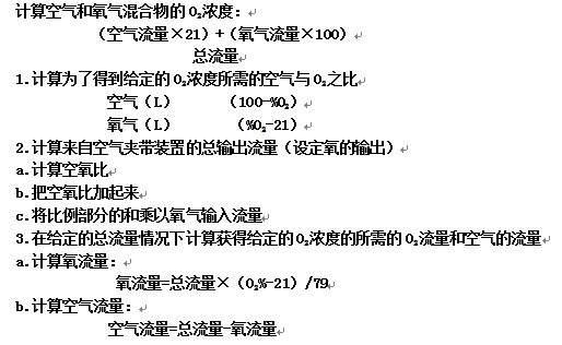 1.气体混合原理(高流量吸氧装置混合气体氧浓度计算方程) VFCF=V1C1+V2C2 V1和V2是被混合的两种气体的体积;C1和C2是这两个体积中的O2浓度;VF和CF是最终混合物的最终体积和浓度。 2.计算氧气百分比、比值和流量的方程 应用该方程的变化来计算:(1)空气和O2混合物的最终浓度,(2)获得给定的FiO2所需的空气与O2比率,(3)来自空气夹带装置的总输出流量,以及(4)必须添加到一个空气量中的氧气量才能获得一个给定的FiO2。 用来估计空气氧气比的魔法盒 (四)适应症及禁忌症: 1.适应症: ①低氧血症伴高碳酸血症患者 ②COPD(慢阻肺)患者和慢性肺源性心脏病 ③通过对文丘里装置进行适当组合,可以制作成适合患者脱机的氧疗设备 2.相对禁忌症:不适应于需频繁取下咳痰及进食的患者 (五)文丘里面罩的优点及不良反应: 1.优点: ①精确给氧,流量高; ②患者呼吸模式不影响吸氧浓度; ③基本无CO2重复吸入,适于低氧伴CO2潴留的患者 ④对于鼻黏膜刺激小 ⑤可湿化氧气 2.不良反应:面部不适、恐惧紧张、心率加快、口鼻干燥、面部皮疹、致使气道粘膜干燥。文丘里装置的噪音较大,夜间影响患者的休息。 二、操作流程: 【目的】 在治疗低氧血症伴高碳酸血症的病人时为病人提供稳定、准确的氧浓度。 【用物】 治疗车、文丘里吸氧面罩、氧气流量表、吸氧装置、棉签、胶布、临时医嘱单(或治疗本)、吸氧记录单、消毒洗手液、笔。 【操作步骤】 1.操作者洗手、戴口罩,将所用物品携至床旁。 2.核对病人,向病人解释操作目的,取得病人同意。 3.协助病人取安全、舒适卧位。 4.检查鼻腔是否通畅,用湿棉签清洁两侧鼻孔。 5.安装氧气表并检查是否漏气,连接一次性吸氧装置,接文丘里呼吸面罩,检查面罩各部分功能是否良好。 6.遵医嘱调节氧浓度。(设定患者的吸入氧浓度。现行市面上通用的文丘里装置部件主要为两种类型,一种为固定式(图5),另外一种为可调节式(图6)。固定式的通过更换不同颜色的文丘里装置,保持其他部件的通用,从而改变射流孔的大小和引入孔的大小,然后不同颜色的文丘里装置代表不同的输送气的氧浓度。可调节式的分为外管和内管,两管的连接处共同形成射流孔,通过旋转外管,改变内管和外管形成射流孔的大小和引入孔的孔径,进而改变两者的比值。外管有指针指向不同的氧浓度和氧气射流流速[6]。)