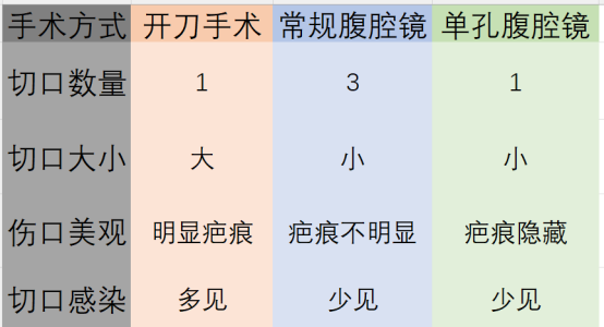 什么是单孔腹腔镜阑尾手术?时间:2025-10-15 浏览量:2875 来源:自贡市第四人民医院 作者:急性阑尾炎是普外科最常见的急腹症之一,目前治疗方式以腹腔镜手术为主,常规的腹腔镜阑尾切除需要在人体做3个切口(5-10mm),而单孔腹腔镜阑尾手术是指通过1个切口进入腹腔,置入腹腔镜器械进行阑尾切除的手术操作。 切口部位: 经脐做一个2-3 cm的切口,置入腹腔镜的器械完成阑尾切除,之所以选择肚脐,是因为肚脐是人体天然的疤痕结构。在这里进行手术不会增加额外的疤痕,有利于美观。在单孔腹腔镜手术医生眼里,肚脐好比螺母,旋开它就可以进行“产品维修”了。 哪些人适合做单孔腹腔镜阑尾手术?哪些人不适合? 适应症:初次发作、发病时间不长的非复杂性急性阑尾炎 禁忌症:反复发作的慢性阑尾炎、伴有阑尾周围脓肿的患者、既往曾行腹腔内手术 单孔腹腔镜手术有哪些优点? 微创性 通过肚脐进入腹腔完成手术,切口少,恢复快,术后无需拆线。 美容效果 脐部切口长度2-3cm,愈合形成疤痕由于脐部褶皱的覆盖,术后瘢痕不明显,更具有美观性。 减轻疼痛 切口数量的减少,术后腹壁切口的疼痛会明显减轻。 易于取标本 肚脐切口被撑开后直径可以达到3 cm,使得切除后的阑尾标本更容易取出,降低因挤压阑尾造成切口感染的风险。 单孔腹腔镜手术有哪些缺点? 增加手术难度 在单孔腹腔镜手术中,由于所有的操作器械都经过单一孔道进入,操作空间狭小,器械之间相互交叉干扰,容易打架,即所谓“筷子效应”。尤其是镜下缝合操作,多数时候只能靠单手进行。 对术者要求较高 由于操作器械常常与镜头处于同一平行线上,常规腹腔镜的手术三角区消失,需要手术者重新感觉器械的位置和解剖的深度,操作精度下降。术中器械也容易遮挡镜头,有时为了兼顾器械的操作,镜头要做适当的让步,难以获得最佳的手术视野。因此,单孔腹腔镜对手术者的技术和熟练程度要求更高,难度更大,手术时间更长,这在一定程度上也限制了单孔腹腔镜手术的广泛应用。 阑尾切除手术方式对比