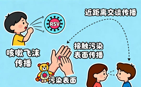 传播途径:主要通过飞沫和直接接触传播,也可通过接触被污染的物体表面间接传播,传染性强,易在家庭、幼儿园等场所扩散. 核心人群:5 岁以下儿童,尤其是6个月以内的婴幼儿。 高危人群:早产儿(≤32 周)、低出生体重儿、免疫力不全者、有基础疾病(如心肺疾病)的人群。