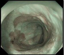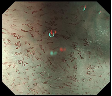 图示:食管早癌在内镜下NBI观察呈片状褐色改变,ME-NBI观察,微血管扭曲、紊乱。 胃癌高风险人群包括: 1.年龄:40岁以上风险显著增加; 2.家族史:一级亲属患有胃癌者; 3.感染因素:长期幽门螺杆菌感染者; 4.癌前病变:萎缩性胃炎、肠上皮化生、异型增生者; 5.地域背景:来自胃癌高发地区者。