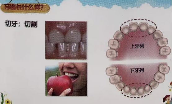 而牙齿有哪些作用呢?第一:咀嚼食物,牙齿能帮助孩子切割和充分的碾磨食物,和我们的唾液混合在一起成为消化食物,吸收营养的第一关。食物如果不能充分咀嚼,直接进入到胃部,会给胃肠道添加额外的负担,造成消化不良。另外咀嚼也能刺激颌面部骨骼的形成。第二:协助发音,我们讲话唱歌唇齿音需要牙齿的帮助。第三:维持面部外形,如果没有牙齿了,我们的面型会变苍老,对儿童来说,即使是换牙期没牙都会害羞的不愿意说话呢。儿童的发音不清及面部外形不协调,都可能会影响孩子的心理健康,所以我们得好好的保护乳牙。 如果我们仔细观察一下牙齿的形态,它们都是不一样的,因为它们都行驶着不同的功能,切牙又称门牙,适用于切割食物的。尖牙,又俗称虎牙,能撕碎食物。磨牙:前牙切碎的小块食物进一步碾磨。