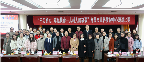 “不忘初心 牢记使命”砥砺前行的儿科人时间:2019-11-25 浏览量:1725 来源: 作者:11月21日下午,由自贡市儿科质控中心主办,自贡市第四人民医院承办的“不忘初心 牢记使命”——儿科人的故事为主题的演讲比赛圆满落幕,自贡市第四人民医院院长助理刘世伟、市儿科质控中心主任李雪梅等8位专家担任此次比赛评委,全程由自贡市第四人民医院儿科主任周宏担任主持。