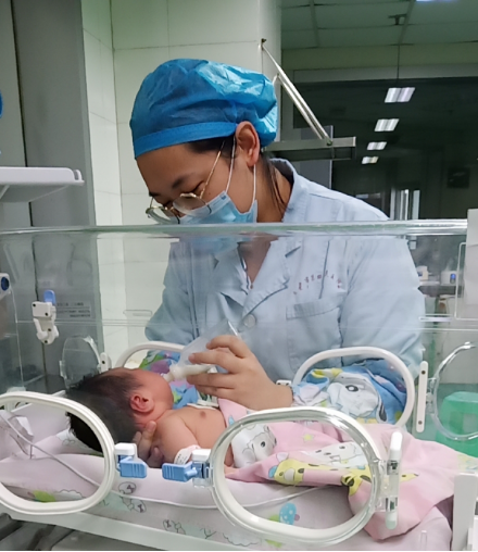 (图为新生儿科刘警予“妈妈”在喂奶)