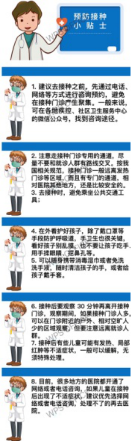 疫情耽误的疫苗接种,怎么办?时间:2020-03-19 浏览量:1847 来源: 作者:阳春三月,新型冠状病毒依然是防控的关键时期,各种权威机构给儿童的预防建议最关键的就是:少出门!现在,各地的疫苗接种门诊陆续恢复正常,家长们可以带孩子去补种疫苗了。 那么在疫情期间,为了尽可能保证儿童健康,儿童疫苗接种该如何进行?哪些疫苗可以延期接种?哪些疫苗需要考虑优先安排?如果要去接种疫苗,又有什么注意事项呢? 首先,我们先看看中国疾控中心关于接种的权威建议:
