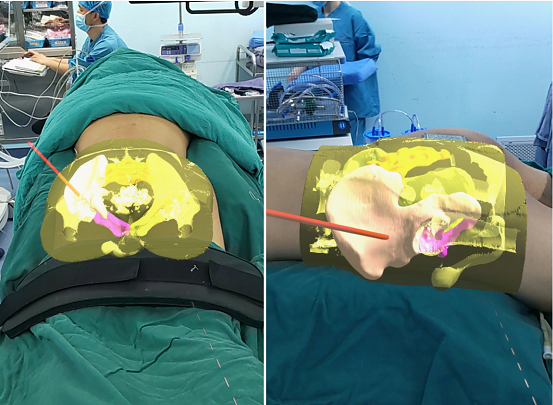 提及两种精准医学“武器”的结合,吴超表示,“AR技术与骨科机器人结合,相对于单纯骨科机器人手术,医生能实时通过HoloLens眼镜观察置钉情况,更大地提高了置钉准确度,且术中可立即验证置钉是否与术前规划一致,便于及时调整。”