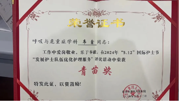 护 士 节 快 乐 国际护士节是每年的5月12日,是国际护士理事会为纪念现代护理学科的创始人弗洛伦斯·南丁格尔于1912年设立的节日。弘扬南丁格尔不畏艰险、甘于奉献、救死扶伤、勇于献身的人道主义精神。 在这个特别的日子里,在自贡市第四人民医院的“第113届国际护士节”大会上,呼吸与危重症医学科被授予“优秀护理团队”荣誉称号;韦鑫护师在“发展护士队伍优化护理服务”评优活动中荣获“青苗奖”;兰雪苗护师在“发展护士队伍 优化护理服务”评优活动中荣获“技能奖”,曾红护师在2024届护理临床带教工作中表现突出,被评为“优秀护理带教老师”荣誉称号。
