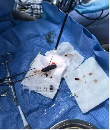 下午三点左右,我院收治的气管切开术后的患者刘大爷,突发急性呼吸危象,先是自觉呼吸极度费力、气促症状加剧,随即出现神志模糊、口唇及皮肤紫绀等缺氧表现。监测其血氧饱和度快速下降至50%左右,值班王医生第一时间实施急救,通过气管切开处高流量吸氧,同时尝试经气管切开处吸痰,但吸痰管仅能深入少许。数分钟后,刘大爷的呼吸困难症状得到初步缓解,血氧饱和度也逐步回升至90%。 家属抵达重症监护后向医务人员补充了患者的既往病史:刘大爷数年前接受过食管癌手术,去年癌细胞发生喉部转移,因喉部手术需建立人工气道,遂行气管切开术,病情缓解后便居家修养。 急救后,重症监护室医护团队对刘大爷实施持续生命体征监护,其血氧饱和度指标虽保持相对稳定,但听诊可闻及气道内哮鸣音(俗称“小鸡叫”),患者仍表现为呼吸费力、坐卧不安、全身出冷汗。重症监护室王医生结合症状与体征,判断他的气道内存在异物,随即尝试经气管内钳取,因异物质地坚硬,坎顿位置较深,难以取出。