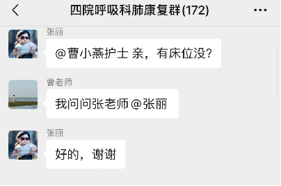 出院后的关怀 在患者出院前,由责任护士向患者做出院指导,通过口头的宣教、发放健康宣传手册、提供微信肺康复群的二维码以及电话随访,通过简单的交流,给予正确的疾病相关指导,了解患者在出院后的疾病动态,塑造对抗疾病的决心,由于呼吸系统疾病是慢性疾病,我们也为患者提供在肺康复群“预约床位”的便捷呼吸通道,提高患者的就医体验。