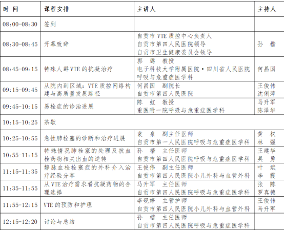 【承办单位】 自贡市VTE质控中心、自贡市第四人民医院小儿外科与血管外科、自贡市第四人民医院呼吸与危重症医学科