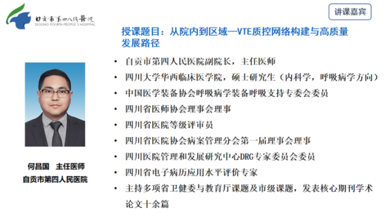 自贡市第四人民医院 何昌国 副院长 《从院内到区域:VTE质控网络构建与高质量发展路径》