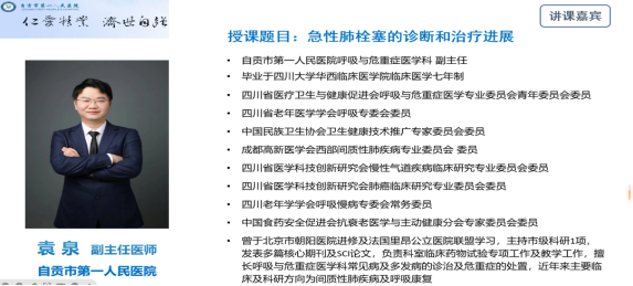 自贡市第一人民医院 呼吸与危重症医学科 袁泉 副主任医师 《急性肺栓塞的诊断和治疗进展》