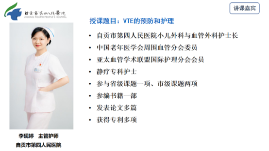 自贡市第四人民医院 小儿外科与血管外科 李砚婷 主管护师 《VTE的预防和护理》