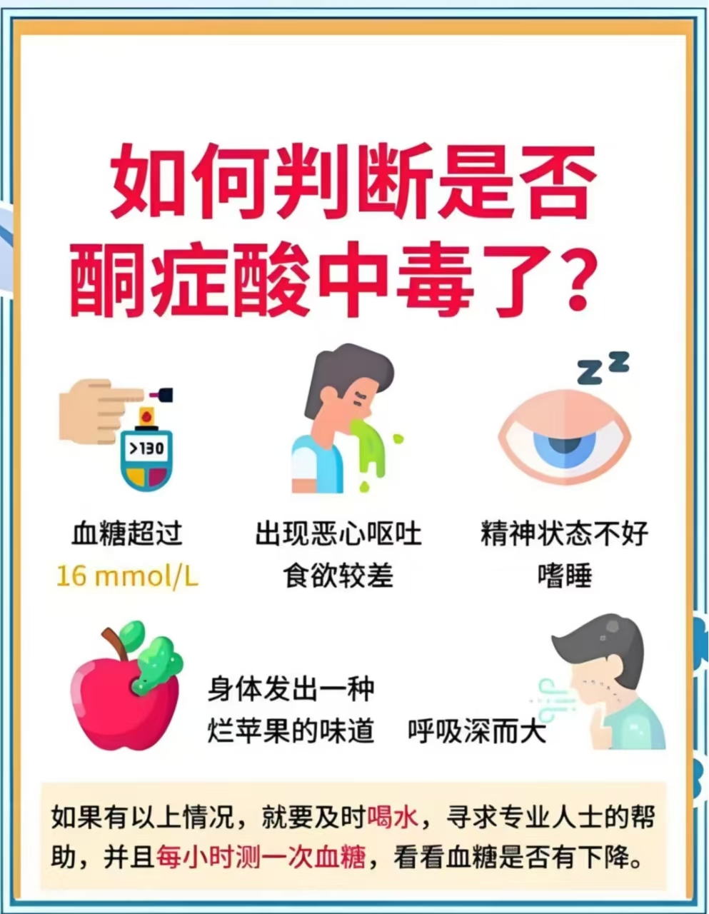 什么是糖尿病? 糖尿病是由遗传和/或环境因素共同作用引起的一种慢性、全身性、代谢性、进展性疾病,高血糖是其主要特征。糖尿病的主要病理生理基础是体内胰岛素绝对或相对缺乏,或伴有胰岛素作用缺陷(即胰岛素抵抗)。长期高血糖可引起多种器官损害,导致残废或过早死亡。 ![]() 糖尿病的危害: 急性并发症: 因急性高血糖引起的糖尿病酮症酸中毒、高渗性高血糖状态等急性并发症,如果救治不及时可能危及生命。 ![]()