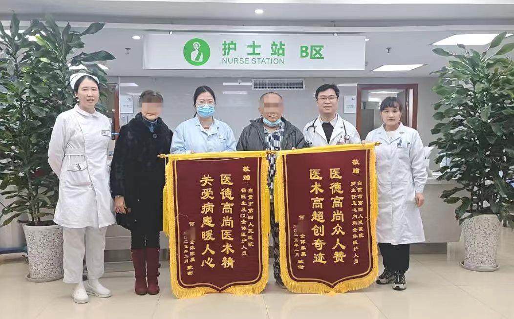 近日,在市四医院重症监护室(ICU)、心血管内科等科室联合接力下,医务人员把游走在死亡边缘的极重度心肺功能受损患者何先生拉了回来。如今的何先生心肺功能已顺利恢复,出院时,他和家属特地向医务人员送来了锦旗。