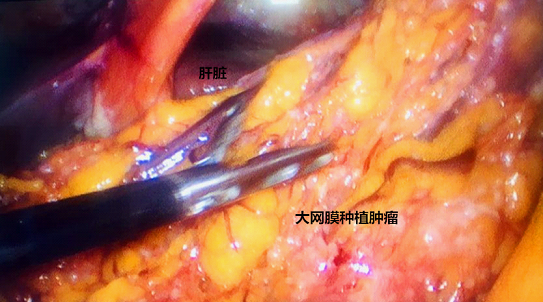 术中,我们发现她的腹膜已存在大量的广泛种植转移癌结节,并伴有大量癌性腹水。