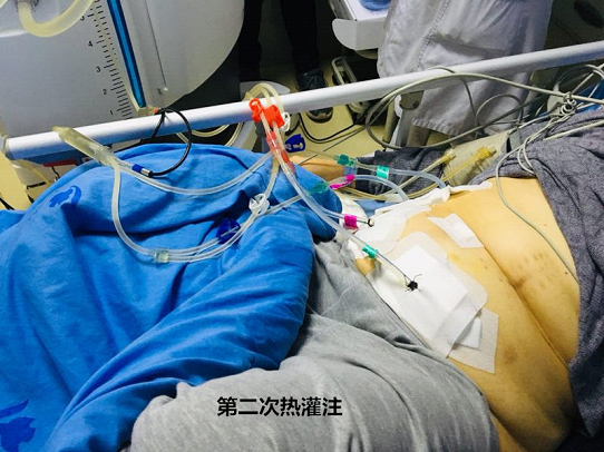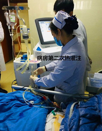 范婆婆来到我们医院的时候,精神状态很好,也特别的乐观。两个儿子迫切的要求为老人治疗,因此我们立即着手必要的术前准备,并给予营养支持。一切就绪后,于3月上旬,我们为范婆婆开始了第一次体腔热灌注化疗。