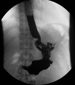 腹腔镜术中探查证实肿瘤位于贲门口,肿瘤巨大,无法行楔形切除,遂行开腹近端胃切除、残胃保留、双通道吻合。手术顺利,术后患者恢复佳。目前患者以近流食、进食后无腹痛、腹胀、恶心、呕吐、吞咽困难,无返酸、嗳气、烧心、胸骨后烧灼样刺痛等不适。