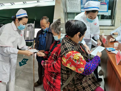 李红护士长为群众发放健康宣传资料