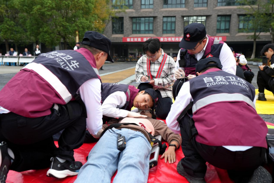 此次演练模拟了沿滩区仙市镇某村发生5.5级地震后的卫生应急救援场景。“地震”发生后,120急救中心迅速派出救护车前往现场,救援队伍抵达现场后,首先对伤员进行检伤分类,将轻伤员安置在绿区进行简单处置,而重伤员则被送至红区和黄区接受急救。对于颅脑损伤、骨折等伤情较重的伤员,医护人员进行及时包扎、固定和输液等急救措施,确保其生命体征稳定。医护人员分工明确,抢险救援、检伤分类、心理疏导、固定伤员等各环节紧凑有序,展现了专业救援队伍在灾难面前的出色应对能力。演练还模拟了地震后的防疫消杀环节,由市疾控中心对“灾区”进行消毒消杀处理,确保灾后环境安全与卫生,防止次生灾害发生。经过近一个小时的紧张处置,所有伤员均得到有效救治。随后,急诊科主任医师对本次演练进行了点评。