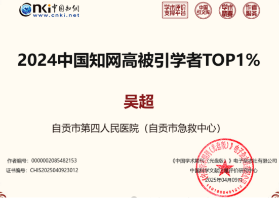 近日,中国知网(CNKI)发布2024年“高被引学者”榜单,市四医院骨科中心主任吴超凭借卓越的学术贡献与行业影响力,成功入选“2024中国知网高被引学者TOP1%”。